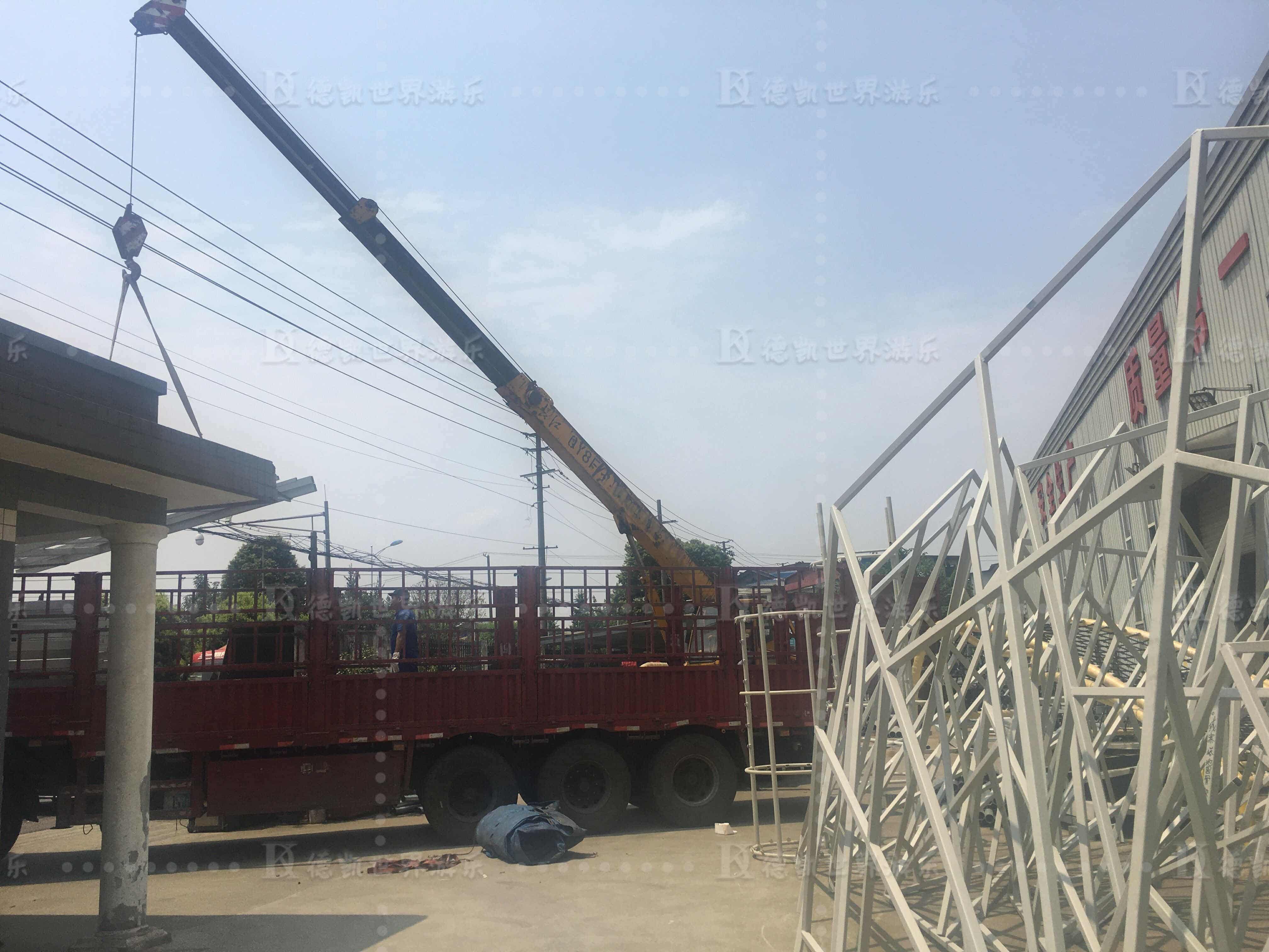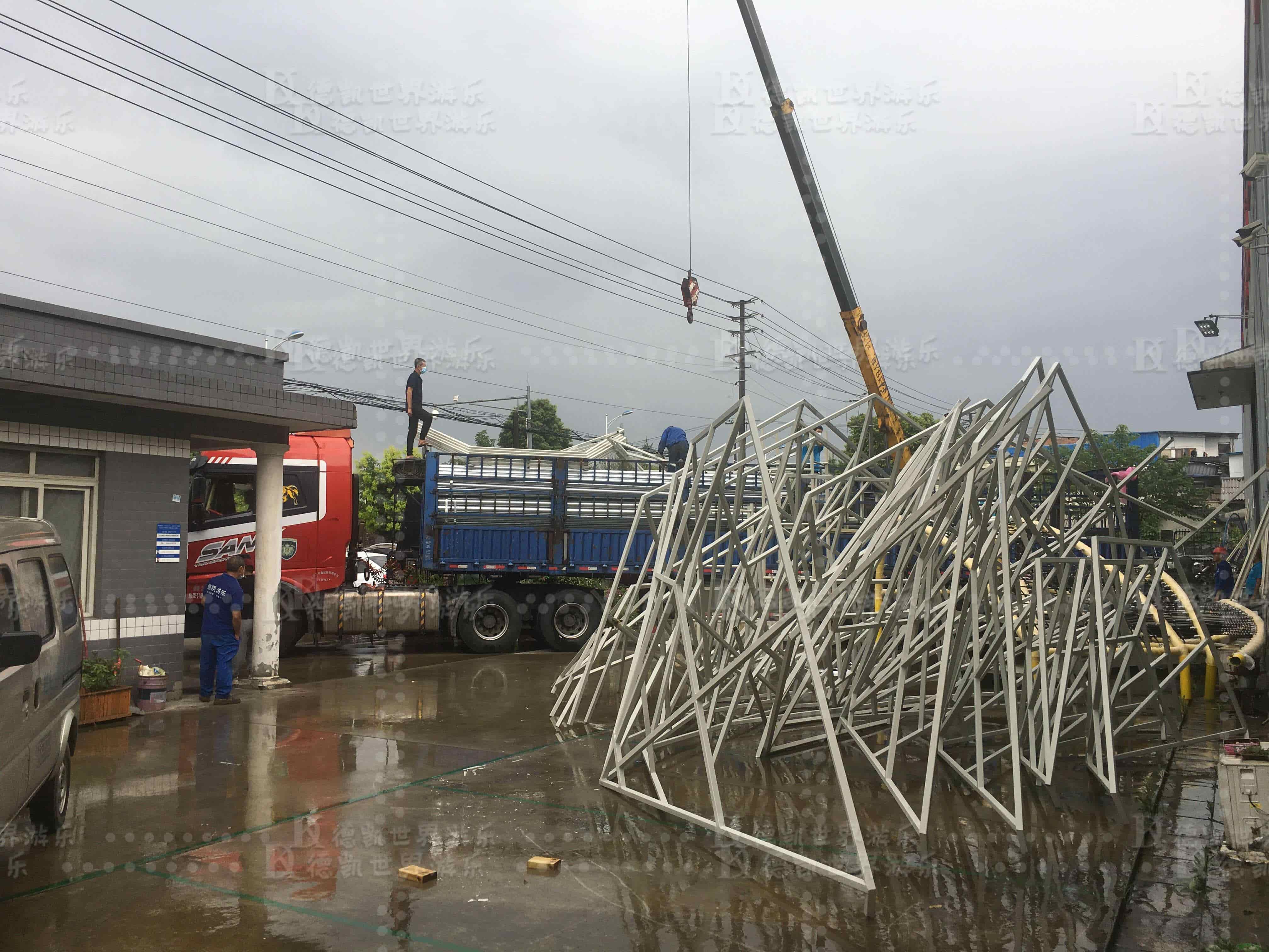 發(fā)往山東青州南陽王府樂園設(shè)施出庫了,如期完成生產(chǎn)任務(wù),現(xiàn)部分設(shè)施開始裝車運往山東青州項目地。