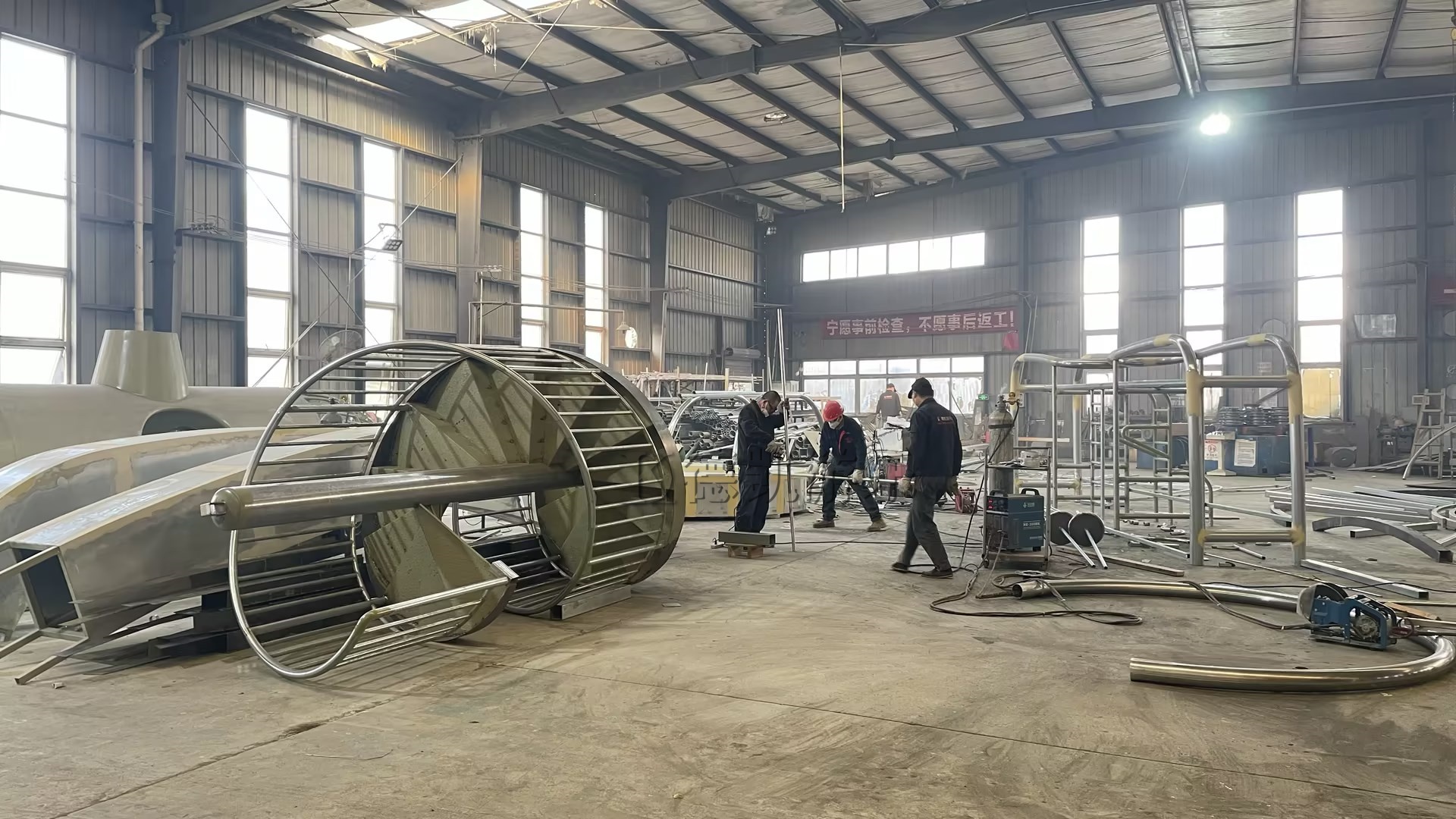 一派熱火朝天的繁忙景象:智能切割設(shè)備火花輕濺、大型機(jī)床轟鳴作響、工人們?cè)诟鞴ば蚯皩W⒆鳂I(yè)、質(zhì)檢人員一絲不茍地測(cè)量記錄……這里,正是公司所有奇幻與歡樂(lè)的“起源之地”。目前,為保障國(guó)內(nèi)外多個(gè)重點(diǎn)項(xiàng)目(“華僑城”、“西安文旅項(xiàng)目”等)的順利推進(jìn),我司生產(chǎn)車間正開(kāi)足馬力,全線進(jìn)入高效、有序的“奮戰(zhàn)”模式。