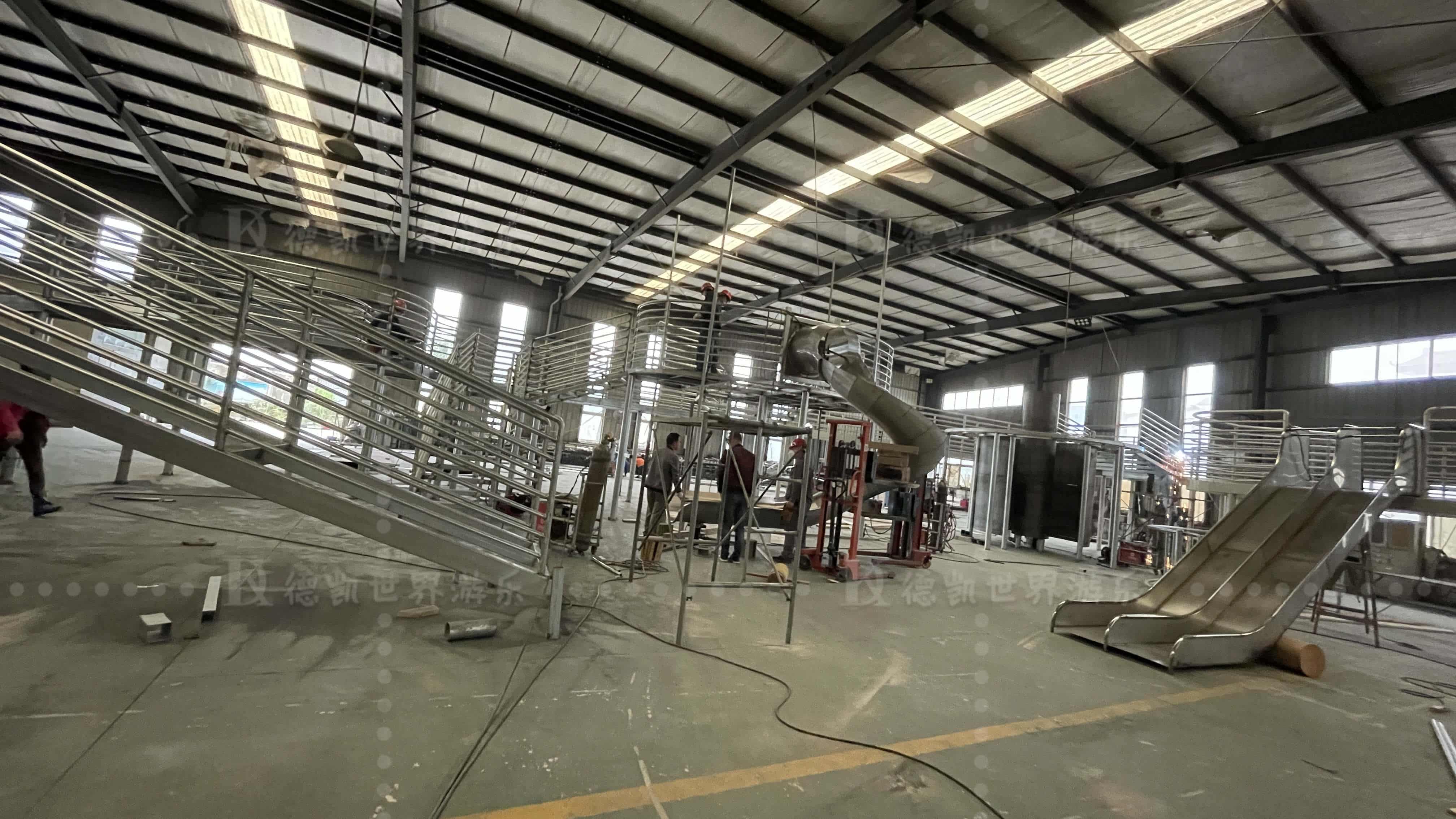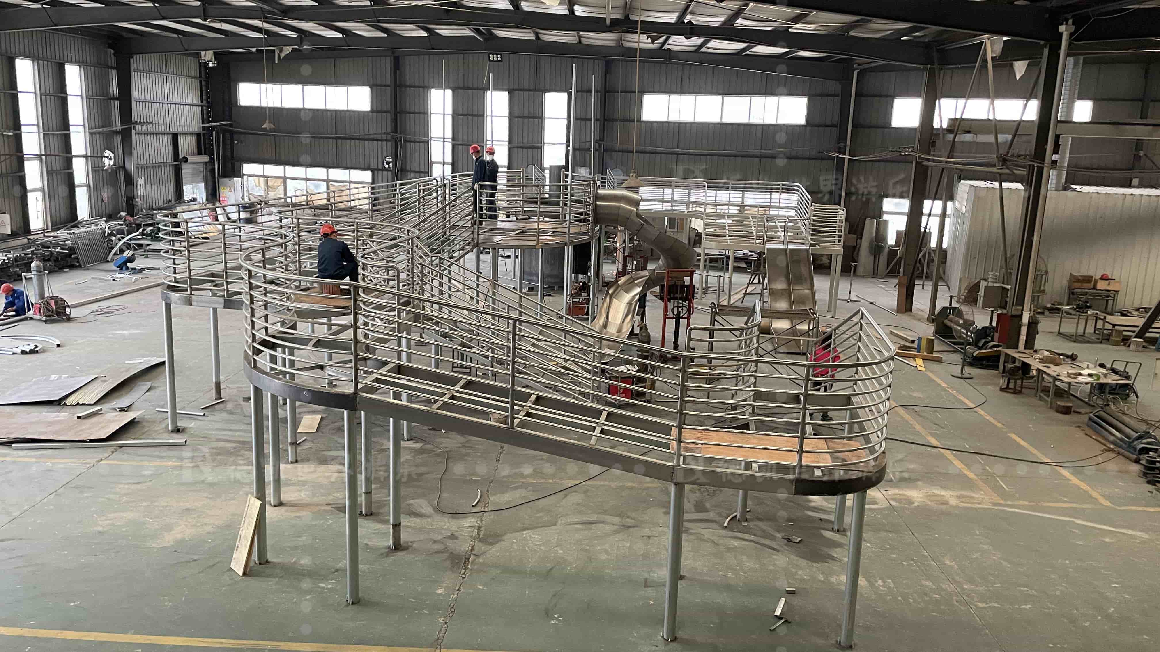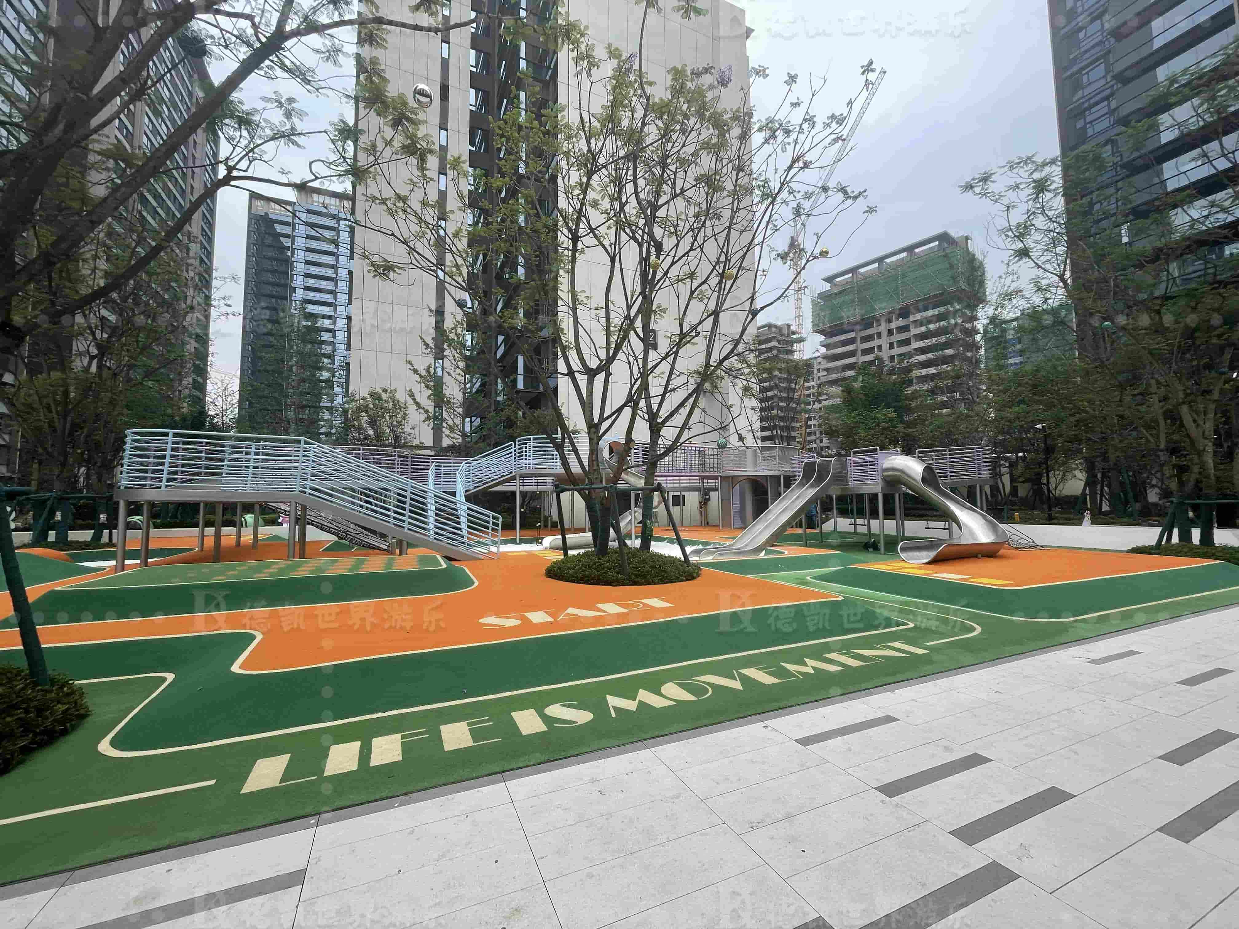 招商時代公園大體量設施當屬多功能廊架,功能包括:滑梯,拓展攀爬網,廊道,旋轉樓梯,秋千等。整個方案從效果圖到樣圖一出得到客戶一致好評。